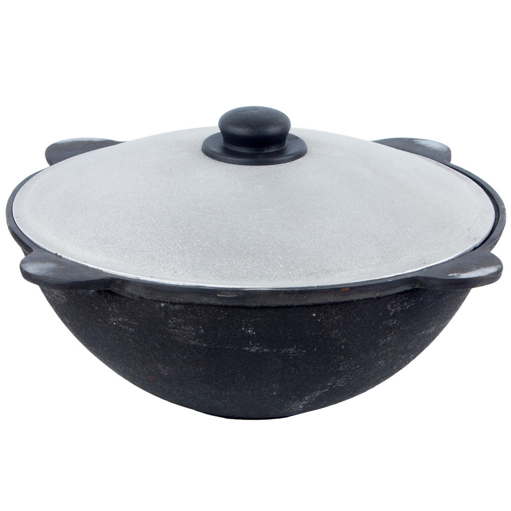 Казан 4,5л узбекский чугунный с ал. крышкой, плоское дно 200-370