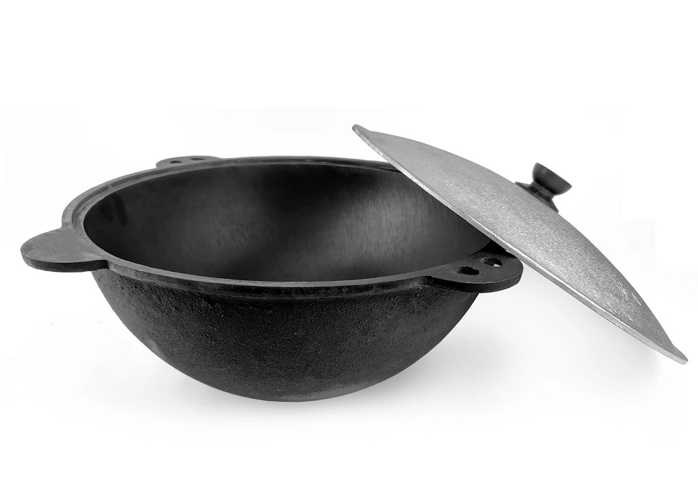 Настоящий чугунный узбекский казан с крышкой разных объёмов 6 литров, 8 литров, 10 литров, 12 литров, 16 литров, 22 литра - незаменимая посуда для приготовления плова, жаркого, супа и других блюд. Толстые чугунные стенки 5-6 мм равномерно нагреваются. Еда долго сохраняет тепло, не пригорает, а вкус получается насыщенным. Стенки чугуна идеально гладкие, а крышка плотно прилегает к корпусу. Вы можете готовить в нем дома, на любой плите - дно казана плоское. Казан не боится огня, поэтому не заменим в походах и на рыбалке для готовки на открытом огне, костре. Прекрасный подарок для дружных семей и туристов. При активном использовании казана, на нём появится защитный слой, который убережёт пищу от пригорания и от ржавчины. Перед первым использованием необходимо обжечь и прокалить согласно инструкции, которая приложена к казану! Разные объемы подходят для разных семей - 4,5л, 6л, 8л, 10л, 12л, 16л, 22л. Казан чугунный с крышкой надежно упакован в воздушно-пузырчатую пленку.