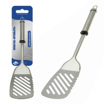 Во время приготовления блюд не обойтись без лопатки. Приспособление предназначено для переворачивания блюд на сковороде, а также для подачи их к столу. Лопатка может использоваться для нарезки и раскладывания кондитерских изделий: пирогов, тортов, пирожных и т.п. Изготовлена из коррозионностойкой (нержавеющей) стали. Преимущество материала в том, что он выдерживает высокие температуры. Удобная форма изделия подойдет для работы с любыми блюдами. Не используйте с антипригарной посудой. Изделие оснащено петлей на ручке для удобства хранения на крючке.
