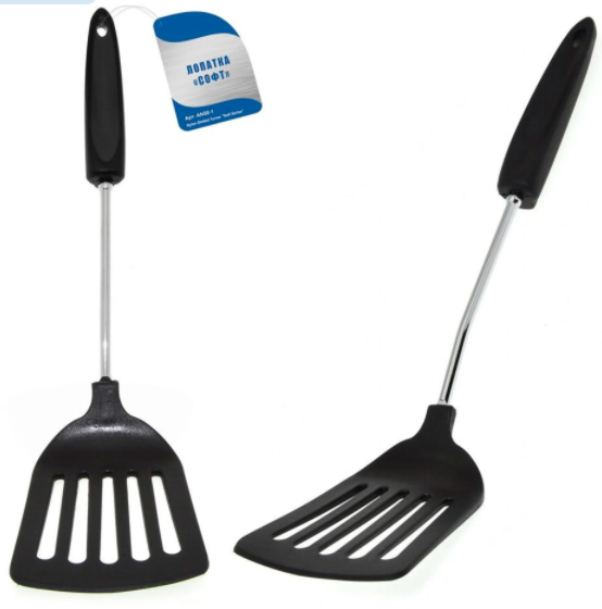 Перемешивать, тушить, переворачивать готовящиеся блюда нужно специальной лопаткой, для чего отлично подходит лопатка «Софт» AN50-1 от производителя Мультидом. Изделие также удобно для подачи блюд, например, при раскладывании слоеных салатов или кондитерских изделий. Такое приспособление можно по праву считать универсальным помощником на кухне — подойдет как для стейков, так и для блинчиков. Модель «Софт» изготовлена из нейлона, что идеально подходит для антипригарных поверхностей. Ручка изготовлена из хромированной стали и пластмассы. На ручке предусмотрено отверстие для подвешивания на крючок. После применения вымыть с жидкими моющими средствами.