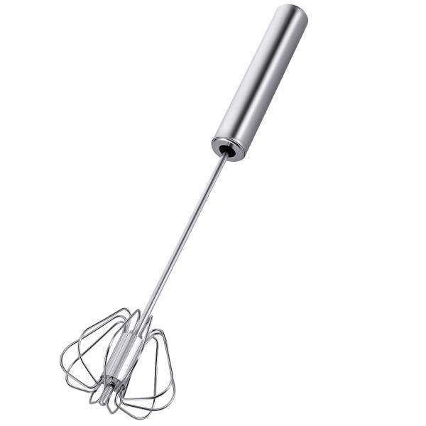 Полуавтоматический венчик для взбивания – идеальное подручное средство на вашей кухне. Это чудо венчик, который за счет небольшого механического усилия может взбивать и смешивать муссы, коктейли, соусы. Вращение и скорость смешивания достигается простым нажатием на основание венчика. В корпусе находится возвратно-поступательный механизм, который вращает лопасти при нажатии на ручку в одну сторону, а при отпускании, в другую. Венчик крутится самостоятельно, тем самым ваши руки не будут уставать во время готовки. Изготовлен из нержавеющей стали, не подвержен коррозии, не впитывает запахи. Благодаря особому механизму венчик идеально взбивает жидкие продукты за несколько движений, не требует батареек или другого источника питания.