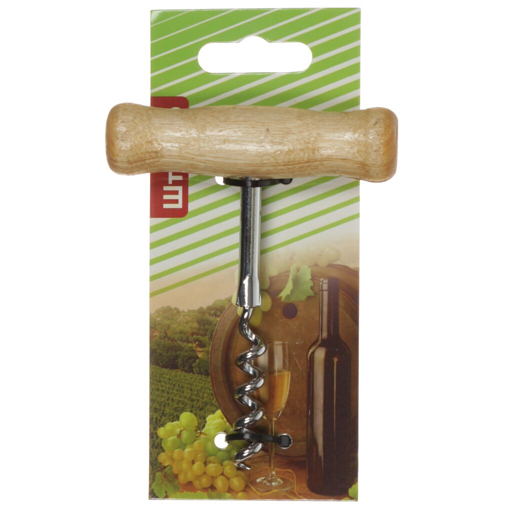 Штопор металл, с деревянной ручкой, навеска, YW-G364/D-048
