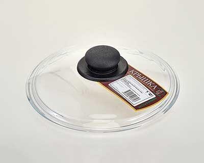 Крышка изготовлена из высококачественного термостойкого закалённого стекла. Снабжена выемкой для вывода пара, которая защищает крышку от повреждений. Под ободком крышки не скапливается жир и остатки пищи. Бакелитовая бобышка на крышке не нагревается, имеет эргономичную форму и не скользит в руке. Можно мыть в посудомоечной машине. Очень удобна в использовании, т.к. позволяет контролировать процесс приготовления пищи не открывая сковородку или кастрюлю. Диаметр 22 см.