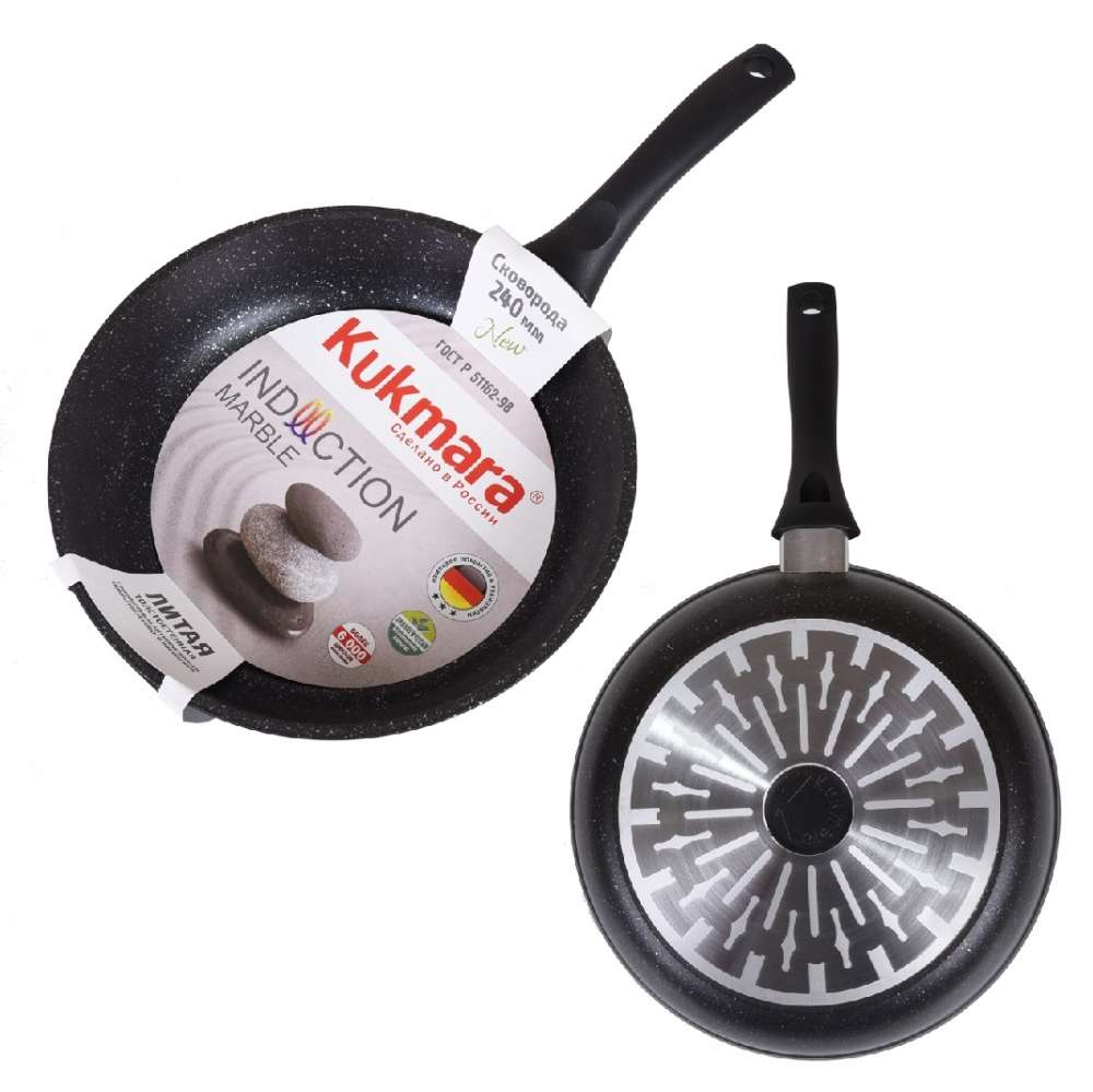 Сковорода 240мм с ручкой Темный мрамор индукция смти240а
