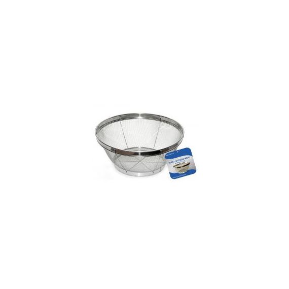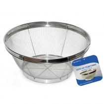 Универсальное приспособление – сито на подставке используется для мытья овощей и фруктов под краном, промывания круп и макаронных изделий. Также, как и обычное сито, эта модель идеально справляется с процеживанием компотов, морсов, чаев и других жидкостей. Сито изготовлено из нержавеющей стали с прочным каркасом и подставкой для устойчивости изделия. Материал долговечен, не портится под воздействием влаги, не образует коррозии. Такое приспособление станет хорошим помощником на кухне. Диаметр 22 см.