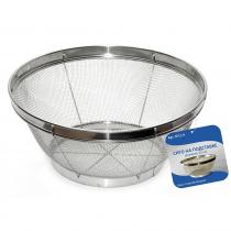 Приспособление изготовлено из нержавеющей стали с прочным каркасом и подставкой для устойчивости. Материал долговечен, не портится в процессе эксплуатации, не выделяет вредных веществ. Большое сито станет хорошим помощником на кухне. Диаметр 25 см.