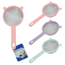 Большое сито — незаменимое кухонное приспособление для процеживания компотов, отваров, морсов и других жидкостей. Удобно для мытья овощей, фруктов, зелени, промывания круп и макаронных изделий. Сетка изготовлена из алюминия, ободок и ручка из пластмассы (полипропилен). На ручке есть отверстие для хранения сита на крючке. Диаметр 18 см.