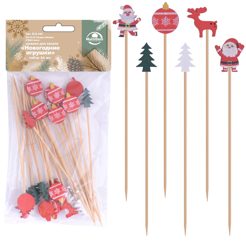 Шпажки для канапе Новогодние игрушки 24шт BJ2-446