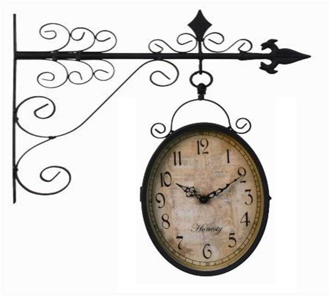 Часы настенные (уличные, двухсторонние) Часы настенные (уличные, двухсторонние). Питание: батарейка - 2 "АА". Материал: металл. Размер: 19x25 см.