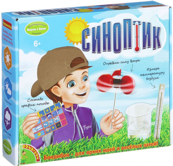 С этим набором ребенок сможет почувствовать себя настоящим предсказателем погоды - синоптиком. Природные явления - это не случайно происходящие события, их можно спрогнозировать. Почему вчера на улице светило солнце, а сегодня уже идет дождь? Какое количество осадков выпало в дождливый день, как сильно дует ветер? На эти и другие вопросы поможет ответить настоящий набор. С его помощью ребенок сможет измерить силу ветра, температуру, а также количество выпавших осадков, и начать вести свой дневник погодных явлений.