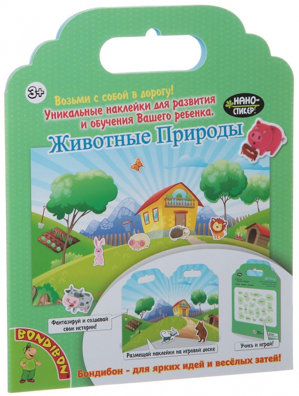 Нано-стикеры - это необычные многоразовые наклейки, не имеющие клеевой и магнитной основы. Они способны закрепиться на любой твердой поверхности, а также на игровом поле, которое входит в комплект набора. Каждый набор является не только интересной, но и развивающей игрой, так как посвящен отдельной тематике. Настоящий набор наглядно познакомит ребят с многообразием дикого и домашнего животного мира. Набор можно взять с собой в дорогу, чтобы с пользой провести время, а с помощью наклеек и игрового поля можно разыграть настоящий спектакль!