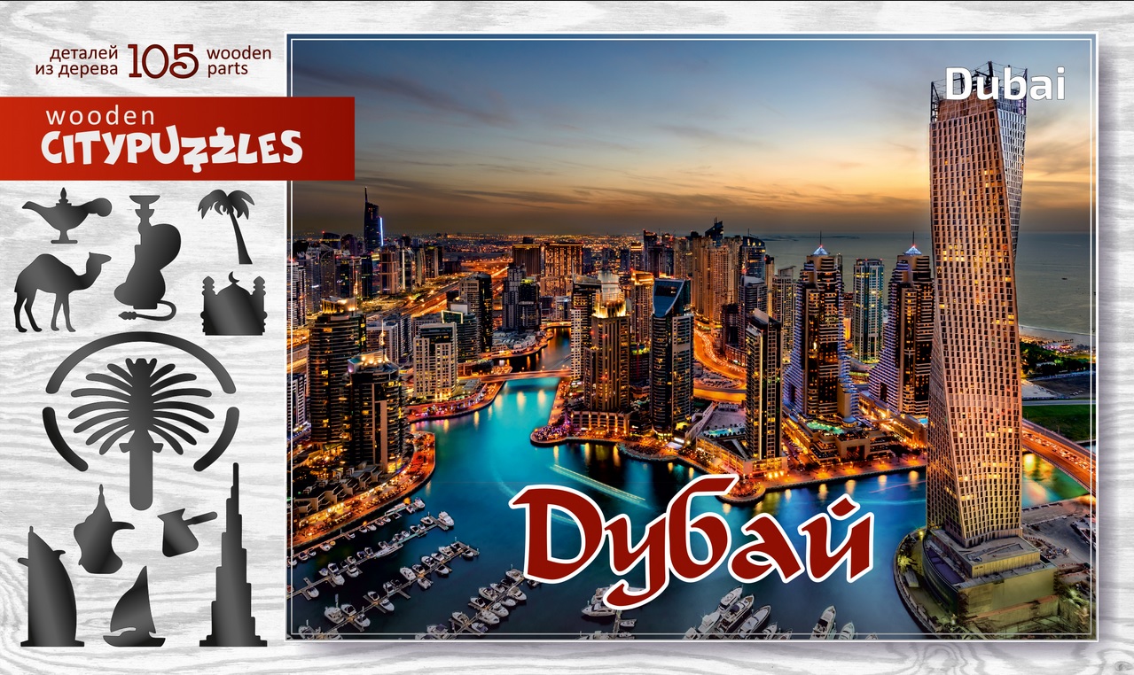 CITYPUZZLES – серия деревянных пазлов с изображениями самых известных городов мира. Деревянные элементы пазла представляют из себя как детали по мотивам достопримечательностей и символов города, так и детали причудливых форм. Нанесение изображения сделано методом прямой экопечати, это позволило сохранить для вас структуру и приятный запах дерева. Вариант игры для детей: попросите ребенка собрать элементы достопримечательностей, назвать их и рассказать, что ребенок о них знает. Сборка пазла доставит вам визуальное и тактильное удовольствие!