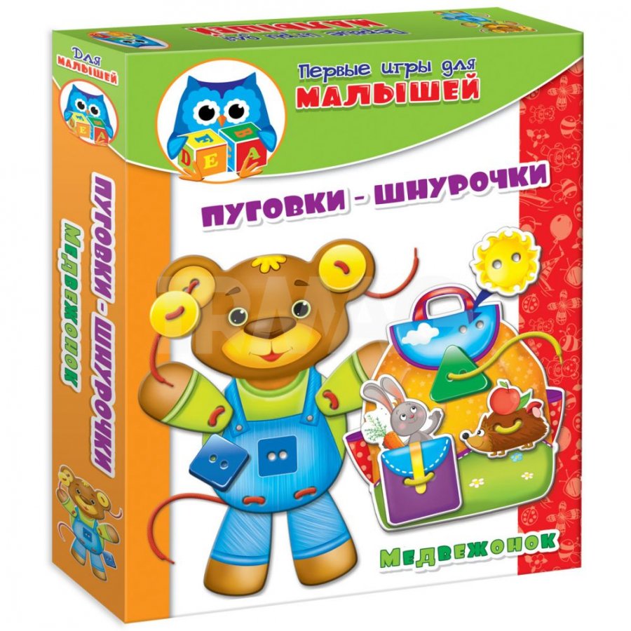В набор «Медвежонок» входят детали из плотного картона для создания фигурки забавного медвежонка с помощью шнурка. Также вы найдете в наборе рюкзачок. Кармашки и яркие крупные пуговицы, которые нужно пришнуровать к нему, станут отличным украшением и будут радовать малыша.